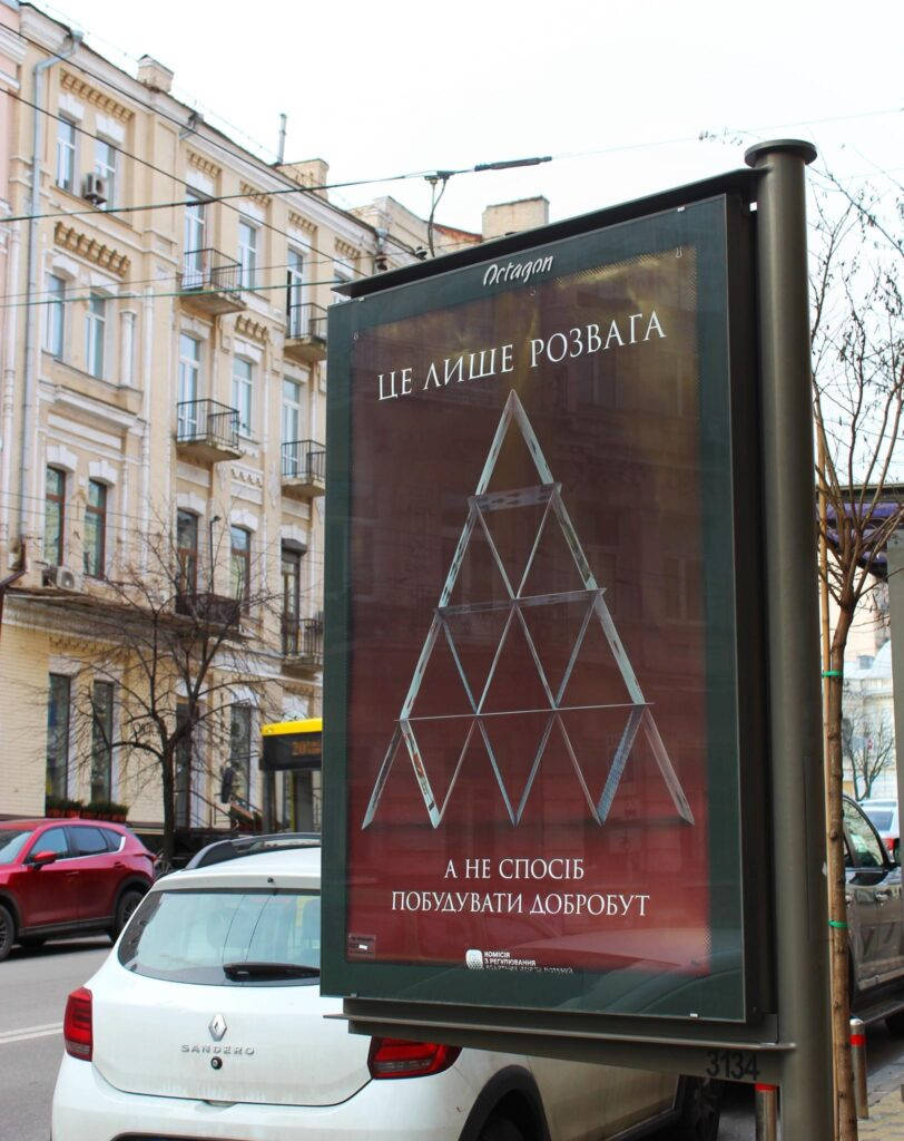 Комісія з регулювання азартних ігор та лотерей запустила першу соціальну рекламу на тему свідомого азарту. Її вже можна побачити у Києві, інформує відомство у соцмережах.